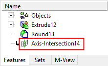 When completed, the Axis-Intersection feature will appear in the Feature Tree as follows: