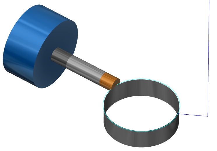 In this example the tool should machine in the middle of the cylinder. The contact point is shifted 5 mm to the front and 5 mm to the side. You see that the tool is cutting off center.