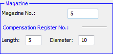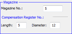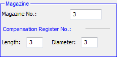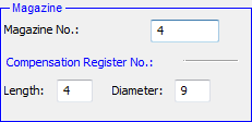 A change in the Magazine Number affects the Length Compensation and the Diameter Compensation; however, the Length Compensation can be defined independently of the Magazine Number.