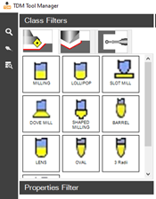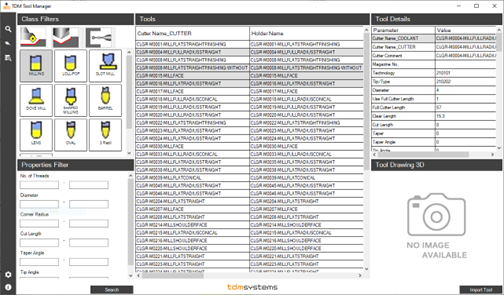 The available cutters can be filtered by a range of properties including diameter, number of threads, corner radius, and so on. Set your required parameters and click Search to filter.