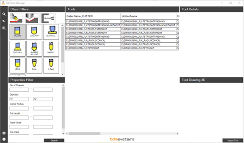 Select one or more cutters then click Import Tool. The cutter assemblies information is downloaded over your internet connection and imported into Cimatron using same mechanism regularly used for import.