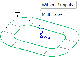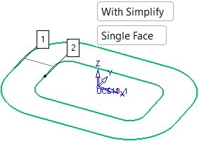 The Without Simplify / With Simplify toggle option lets you define the type of face to be created. Without Simplify produces a procedural type face while With Simplify approximates the procedural faces to analytic faces (planar, cone, etc.) and if this cannot be achieved, it approximates it to a NURB surface. This enables the surface to be machined using the Local Operations machining technology.