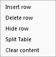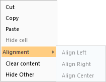 To edit text within a cell, double-click the cell. To perform other operations, right-click within the cell to display a popup menu and select the required option.