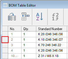 To modify the rows in the BOM, right-click the gray squaregray square to the left of a specific row. The row is shaded and a popup menu with row editing options is displayed.