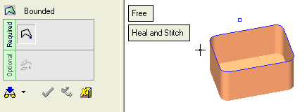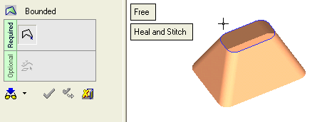 There are cases where it is necessary to attach varying Free or Smooth constraints to specific edges to obtain the required result. Note: A region face is limited to a maximum of 50 curve picks. The boundary contour must be almost planar (up to 45 degrees from the reference plane). |