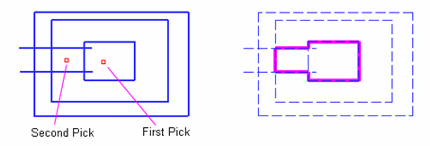 Use the Composite Curve > 2D Single Indication option to define a closed and planar composite curve by using a single indication (close to screen or close to face). The system finds a closed loop from all displayed edges/curves lying in the defined plane (up to tolerance). This option is mostly used in the DieDesign application to create a closed contour in order to define a punch.