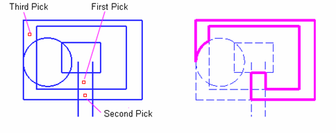In these more complex cases, the boundaries of three picks have at least one common edge, resulting in outer contours.
