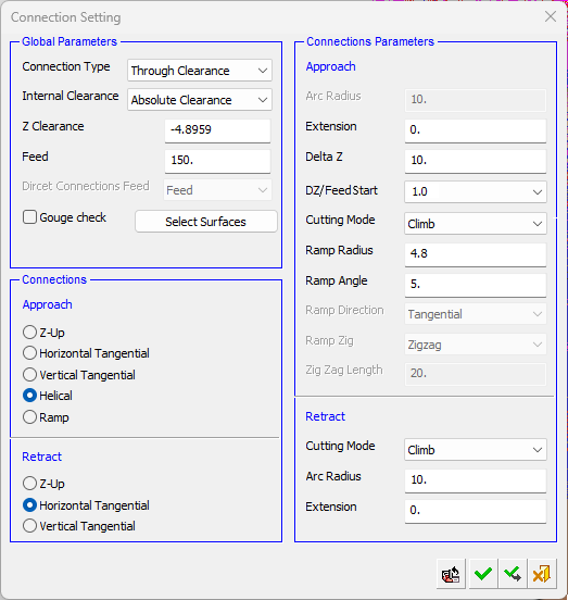 If the Ramp Angle is less than 90 degrees the cutter approaches using a helical motion; This value sets the radius of the helix.