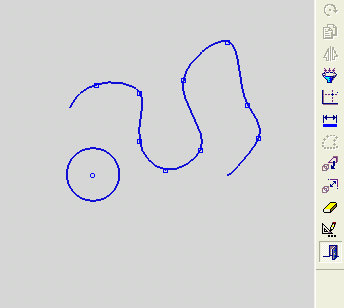 The circle is tangent to the spline and can be moved along the contour of the spline in Select mode accordingly.