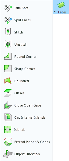 This group of functions is used for performing various operations on Faces. The following optionsoptions are displayed. |