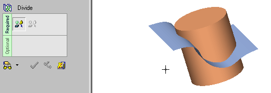 This function divides (trims) one or more open or closed objects (also faces) by using face(s), a plane, object(s), curve, edge or axis as the dividing entity.