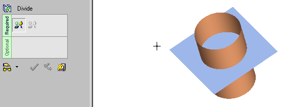 This function divides (trims) one or more open or closed objects (also faces) by using face(s), a plane, object(s), curve, edge or axis as the dividing entity.