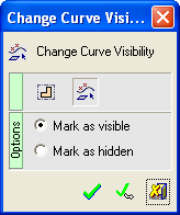 Change the visibility status of view edges. Edges or curves can be defined as Hidden or Visible in which case their specific attributes are according to how they are defined in the View Attributes dialog.