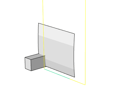 The animation shows the machining of the flank of the block. Due to its curved topology it actually is not possible to be swarfed with one cut. As you can see the tool basically cuts right through the surface.