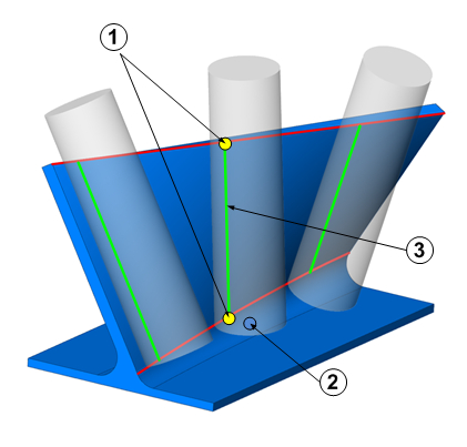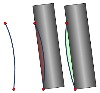 With swarf machining the tool will be aligned between 2 points (1) on 2 curves (red), an upper and a lower curve.