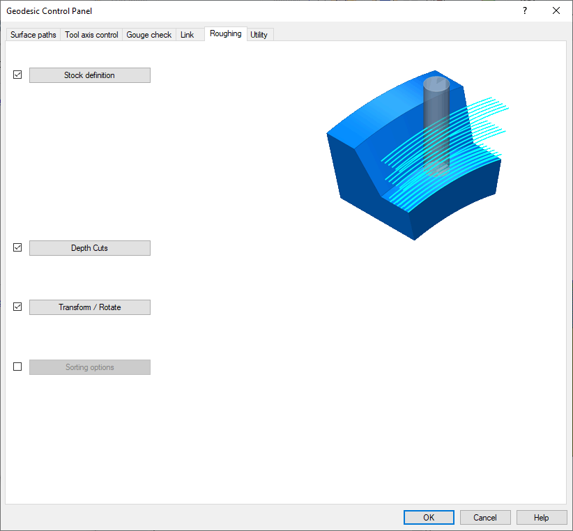 Geodesic is a high quality toolpath calculates an even 3D step over complex parts. It includes support for guide curves, undercut and considers the holder to prevent collisions.