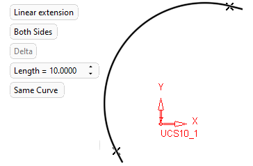This is a toggle option that enables you to define whether the extended curve is a "merged" extension of the original curve or a new (separate) curve: Same Curve / New Curve.