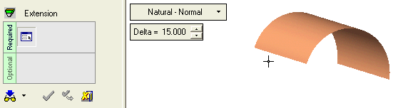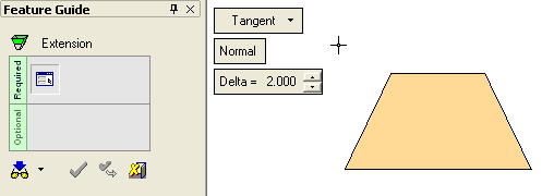 For the face(s) to be extended, pick one or more edges of open or stitched faces and set the parameters.
