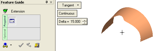 For the face(s) to be extended, pick one or more edges or a composite curve based on the edges of open or stitched faces and set the parameters.