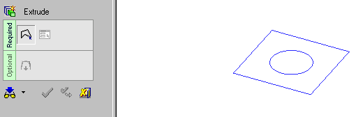 Note: Picking a reference point creates a plane going through the picked point and normal to the extrude direction.