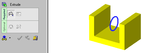 Choose One Side if you want to extrude on one side of the contour. The default direction is normal to the 2D contour or sketch plane. You can flip the direction by clicking the arrow head or body, or you can click on the arrow origin to set another direction.
