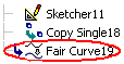 When completed, the Fair Curve feature will appear in the Feature Tree.