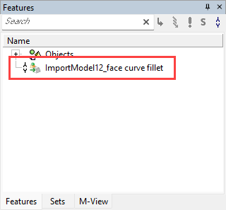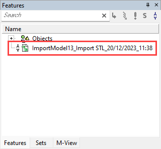 In the Feature Tree, all imported objects are displayed as such, either as ImportModel signifying that they have been imported from another Cimatron file or Import<format> signifying that they have been imported from another CAD format (IGES, SAT, etc.). Information about the original source file is added to the Document Description attribute of the imported file, and a timestamp is appended to the name of an imported part file in the Feature Tree.
