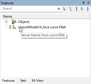 In addition, for ImportModel features (imported from another Cimatron file), moving the cursor over the "import" feature displays a tooltip showing the "Server Name" - the name of the file from which the feature was imported: