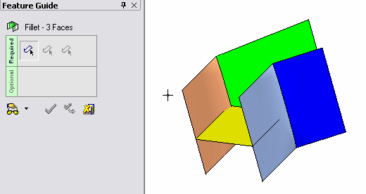 Select Faces > Create Faces > 3 Face Fillet from the menu bar.
