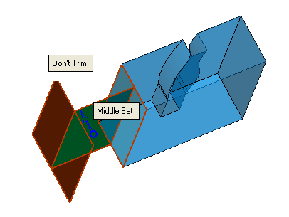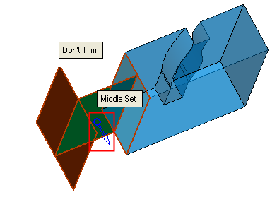 After selecting the third set of smooth faces, you can then define the arrow direction (Flip In/Out). The default direction is based on the pick location on the face. In addition, you can use the Trim or Don't Trim options as required, as described in the steps below.