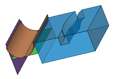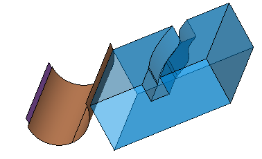 Select and then click the ApplyApply button from Feature Guide. The face is created, trimming the original faces, as follows: