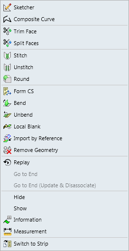 From the Forming Shape environment, right-click to display the Forming Shape popup menu.