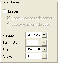 From the Label Format area of the Label of Holes dialog, define the format of the label created:
