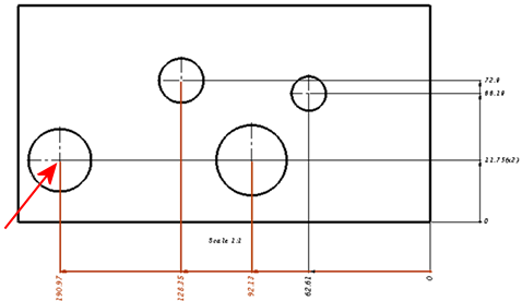 When creating ordinate dimensions on Center Lines, the dimension lines start from the end of the center line, rather than the center of the circle, to create a clearer view. Note that this only works when Center Lines are selected in the dialog (in the Filter section) and Circles are not. |