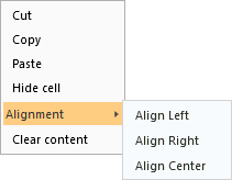 To edit text within a cell, double-click the cell. To perform other operations, right-click within the cell to display a popup menu and select the required option.
