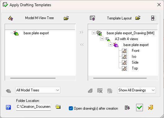 Click OK to apply the selected drafting template. The Apply Drafting Templates dialog is displayed: