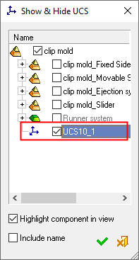 The Show & Hide UCS option allows you to display or hide the UCS's that have been assigned to sub-assemblies in the modeling environment.