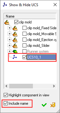To also display the UCS name, mark the Include name checkbox.