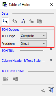 When creating a Table of Holes (TOH), the Table of Holes dialog is displayed. The TOH Options section of this dialog displays the following options: