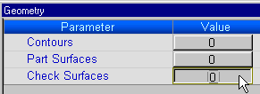 To start picking the required geometry, press the numbered button adjacent to the Check Surfaces geometry parameter. This button displays the number of check surfaces that have already been selected. You are then prompted to pick the required geometry.