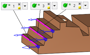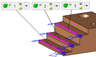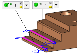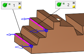 Create Contour geometry based on this Max. Gap value. This maximum gap value is used to analyze the groups of selected faces and create the required geometry. This parameter is used to group faces according to the defined Max. Gap value (the selected faces are grouped considering the gaps between them). In the example below, there are two groups of faces separated by a gap