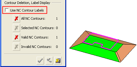 This section of the Contour Manager dialog also interacts with the NC Parameters section of the dialog, via the NC contour labels.
