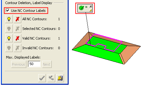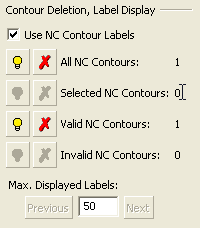 When the Use NC Contour Labels checkbox is selected, this displays labels that are attached to NC contours. Each NC contour has a label attached to the middle point of its first segment by a rubber line.
