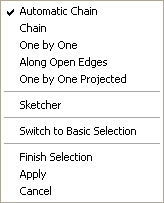When picking curves in either the Basic Selection mode or the Advanced Selection mode, you can right-click to display the following popup menu which has additional picking options: