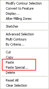 Close the current procedure and open the second procedure. In the contour selection mode, right-click on an empty location in the graphic area and select Paste from the popup menu.