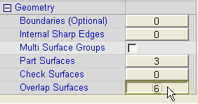 To start picking the required geometry, press the numbered button adjacent to the Overlap Surfaces geometry parameter. This button displays the number of overlap surfaces that have already been selected. You are then prompted to pick the required geometry.