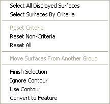 In addition, you can right-click to open the following surface selection popup menu:
