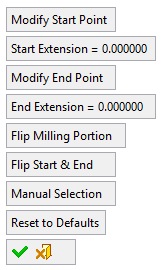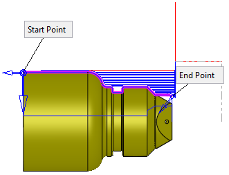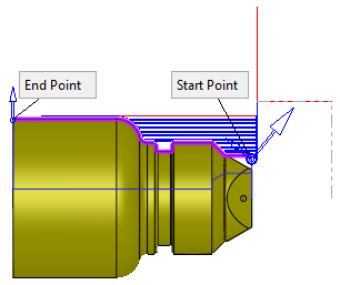Set the start extension amount beyond the Start Point. This extends the contour (by the extension amount) by a straight line, tangent to the first active contour segment. |