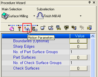 Switch to the Motion Parameters section by clicking the Motion Parameters button in the Procedure Wizard.