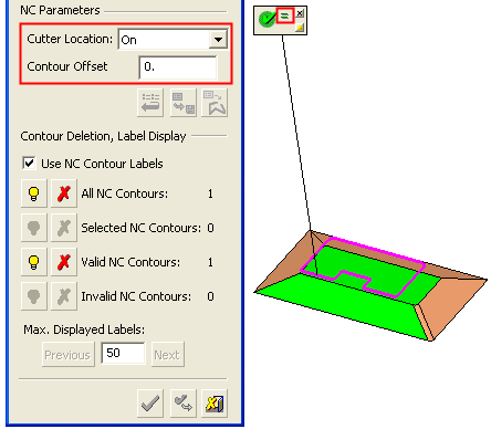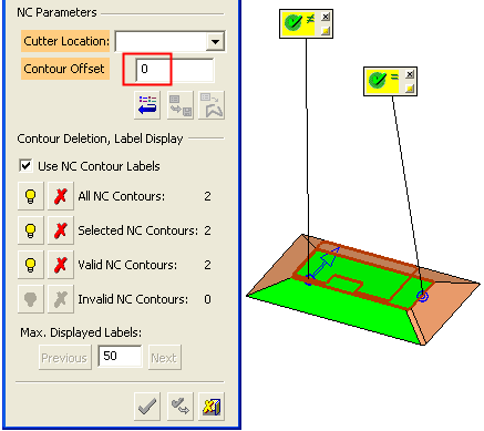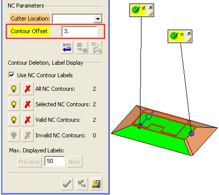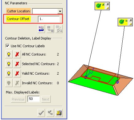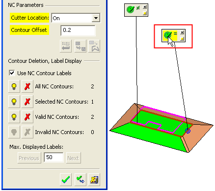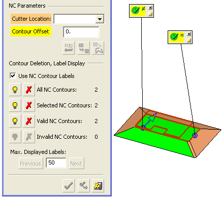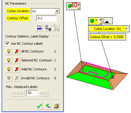 Re-openRe-open the Contour Manager dialog and change one or more of the NC Parameters. The following occurs: